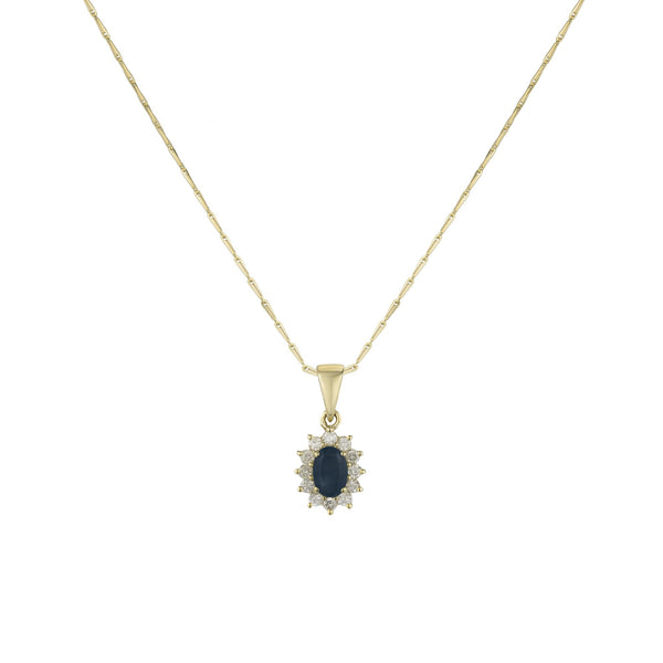 9ct Yellow Gold Oval Sapphire & Diamond Cluster Pendant