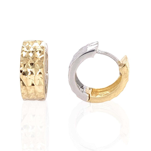 9ct Yellow & White Gold Hammered Hoop Earrings