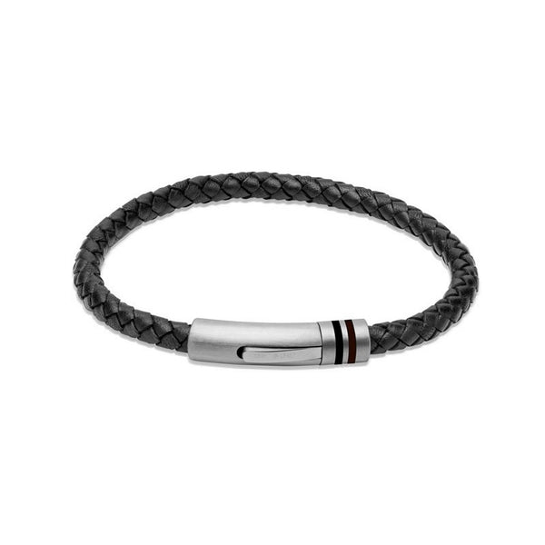 Black Leather Bracelet with Polished Steel Clasp & Black and Brown Elements