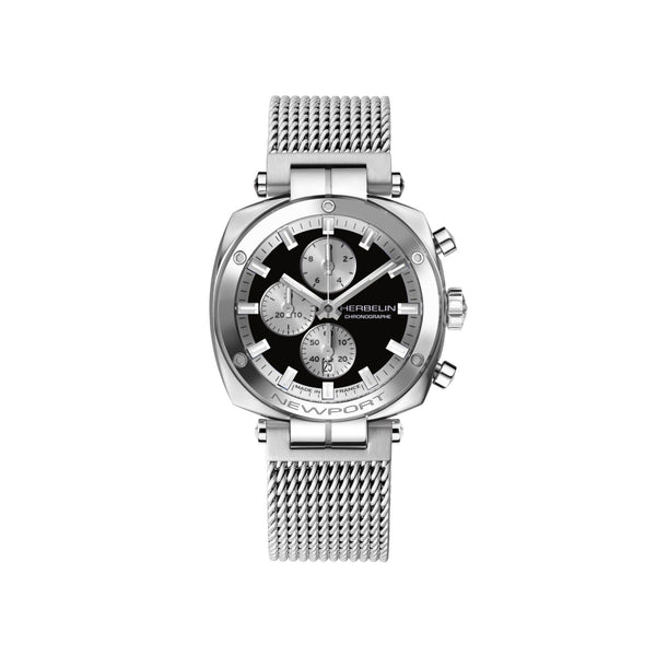 Newport Heritage Chronograph Black Dial Steel Bracelet 42mm