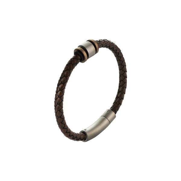Antique Brown Leather Bracelet With a Satin and Polished Gunmetal