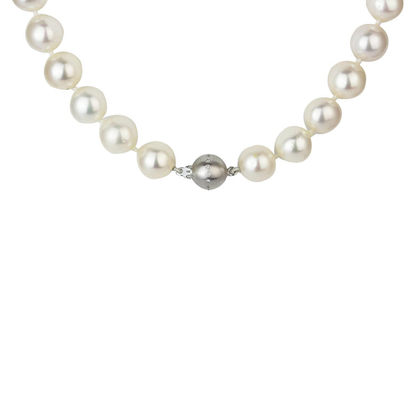 Freshwater Cultured Pearl Necklace 14ct White Gold Diamond Set Satin Ball Catch