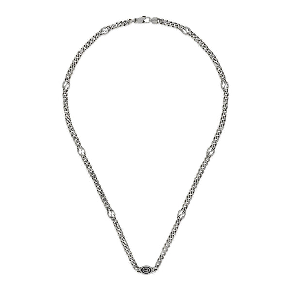 Gucci Interlocking Silver & Black Enamel Gourmette Necklace