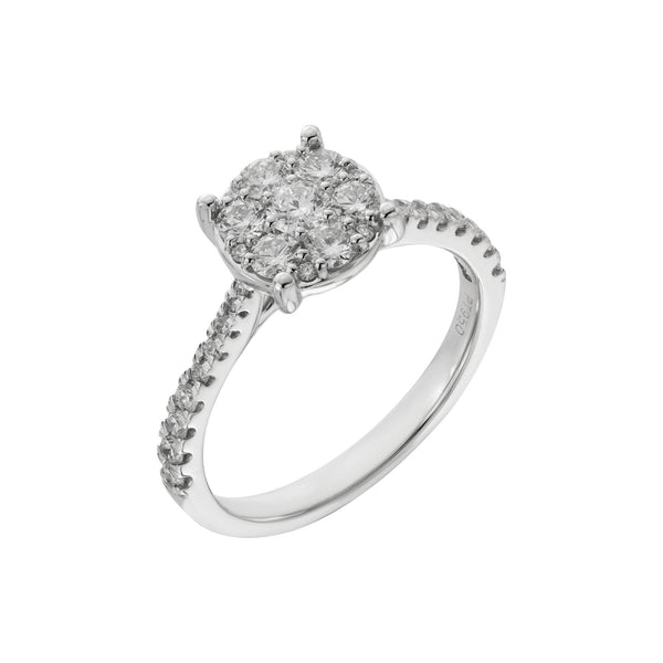 Platinum Round Cut Diamond Cluster Ring, 0.68ct