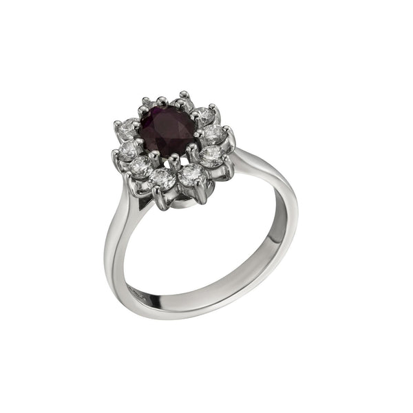 Platinum Oval Cut Ruby & Diamond Cluster Ring