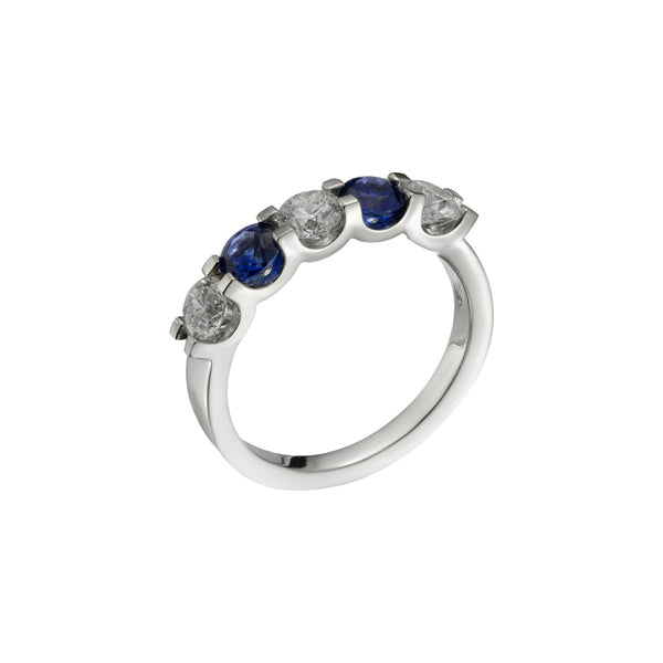 Platinum Round Cut Blue Sapphire & Diamond Five Stone Ring