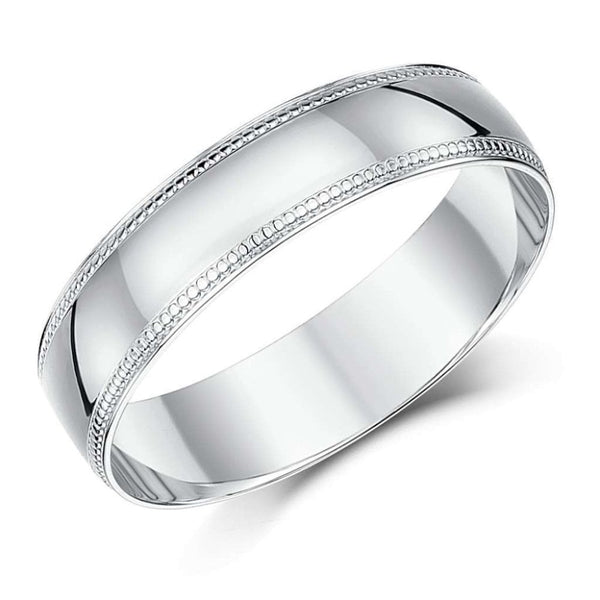 Platinum 5mm Millgrain Edged Court Wedding Band