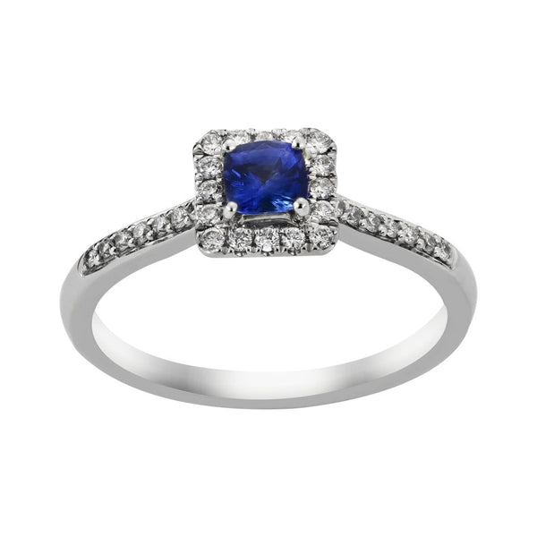 Platinum Blue Sapphire Diamond Halo Ring