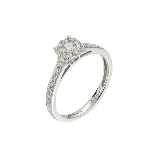 Platinum Round Cut Diamond Illusion Ring, 0.49ct