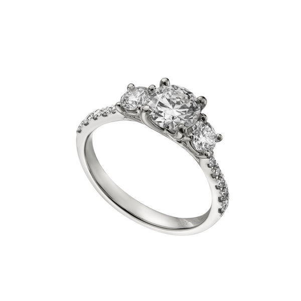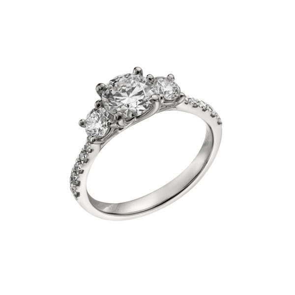 Platinum Round Cut Diamond Three Stone Ring, 1.65ct