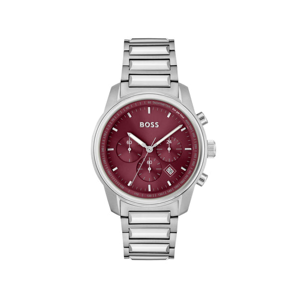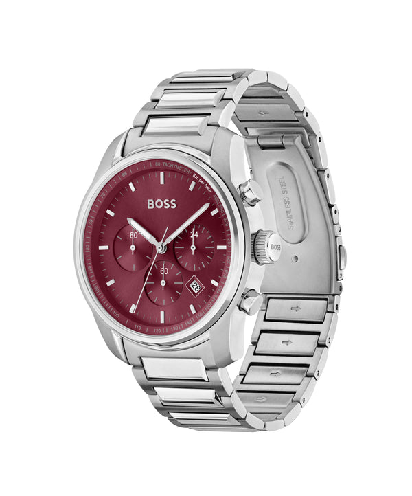 Trace Chronograph Red Dial Steel Bracelet 44mm