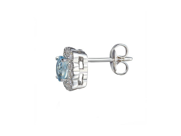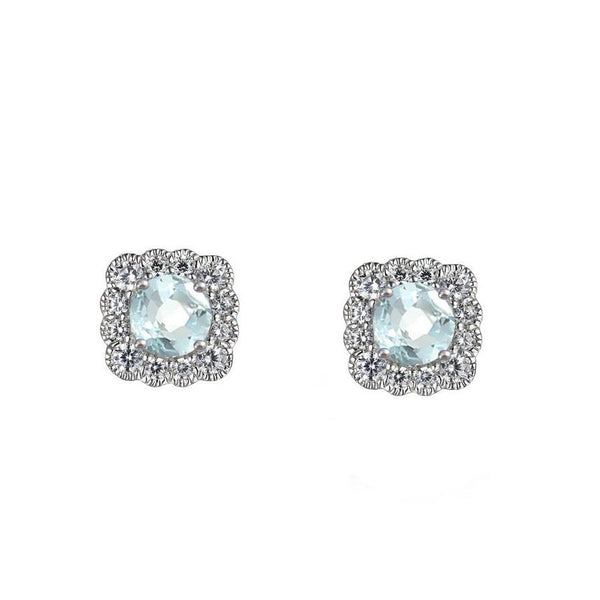 Silver Cubic Zirconia & Aquamarine Square Halo Stud Earrings