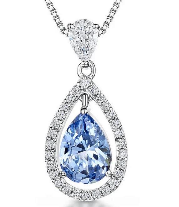 Silver Pear Sky Blue & White Cubic Zirconia Halo Pendant