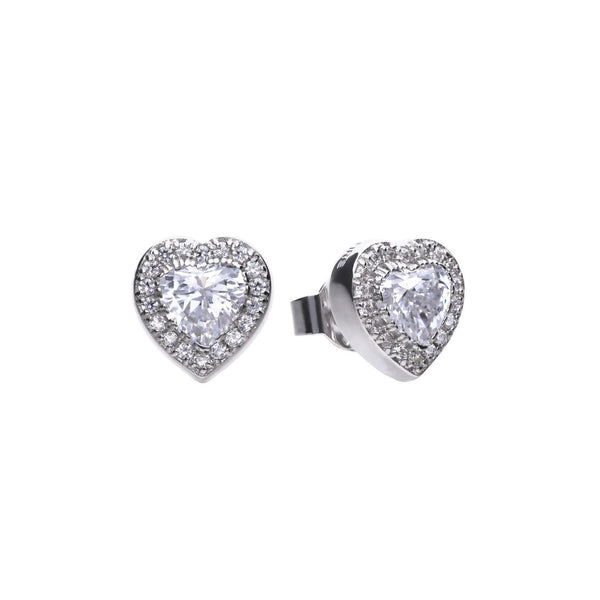 Silver & Cubic Zirconia Heart Halo Stud Earrings