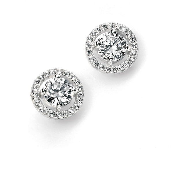 Silver Cubic Zirconia Round Halo Stud Earrings