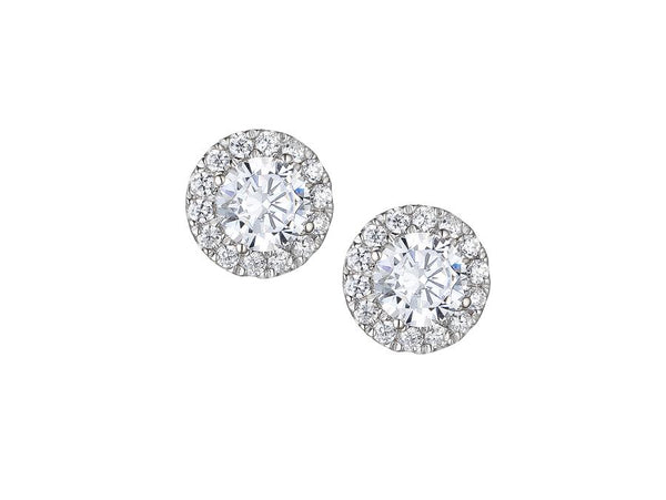 Silver Cubic Zirconia Round Halo Stud Earrings