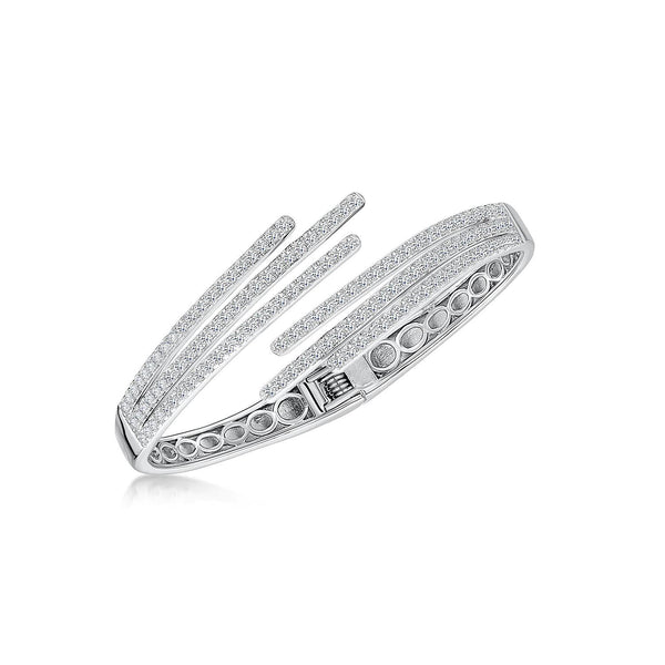Silver & Cubic Zirconia Three Strand Torque Bangle