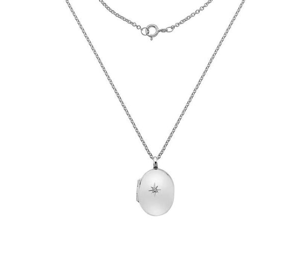 Silver & Diamond Set Oval Shaped Locket