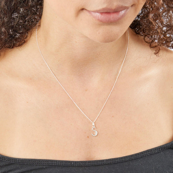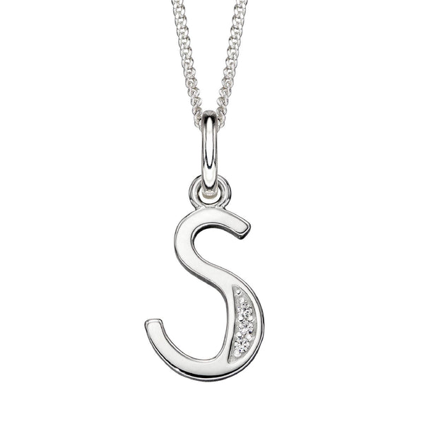 Sterling Silver Initial S Cubic Zirconia Pendant