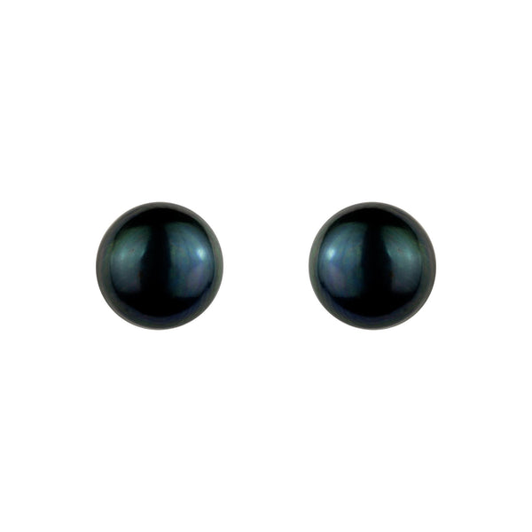 Silver Black 8mm Freshwater Button Pearl Stud Earrings