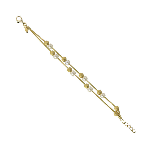Yellow Gold Plated White Freshwater Pearl & Sparkly Ball Bracelet
