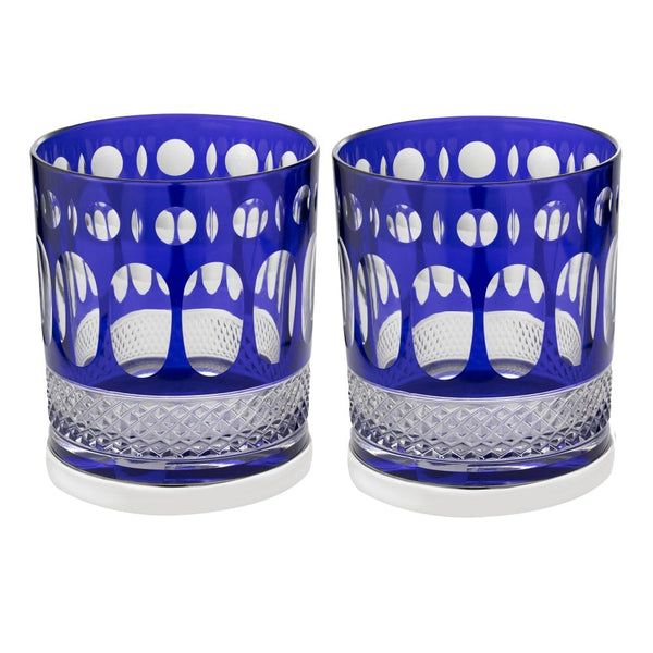 Silver Based Pair of Blue Patterned Whisky Glasses
