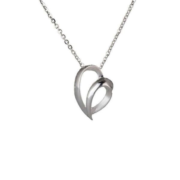 Silver Satin and Polished Finish Fancy Open Heart Pendant