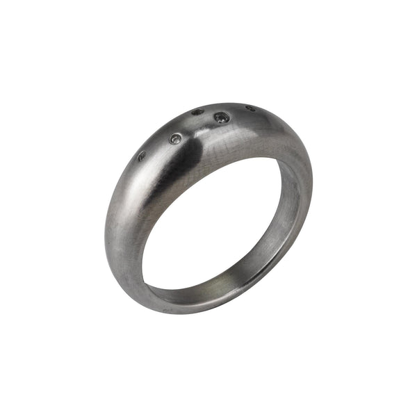 Silver Satin Heavy Dress Ring with Five Diamonds