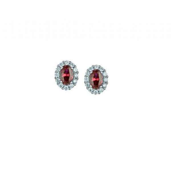 Silver White and Red Cubic Zirconia Oval Cluster Stud Earrings