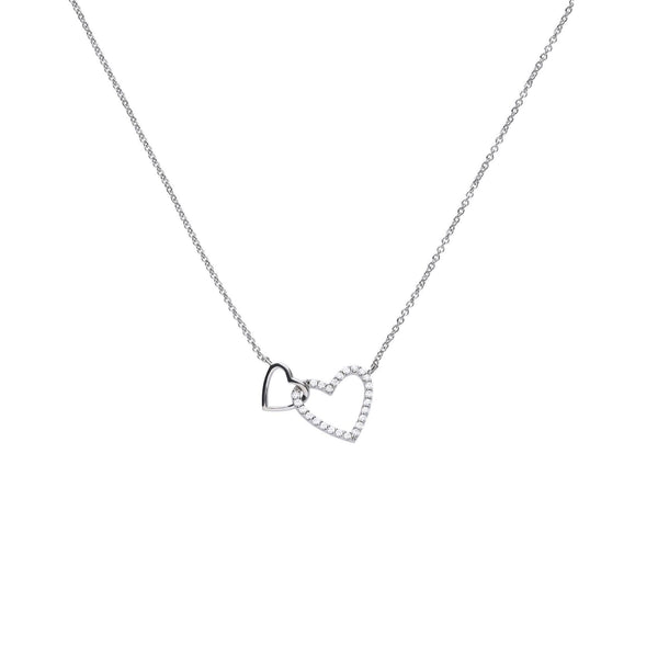 Silver Cubic Zirconia Set Double Entwinned Heart Necklace