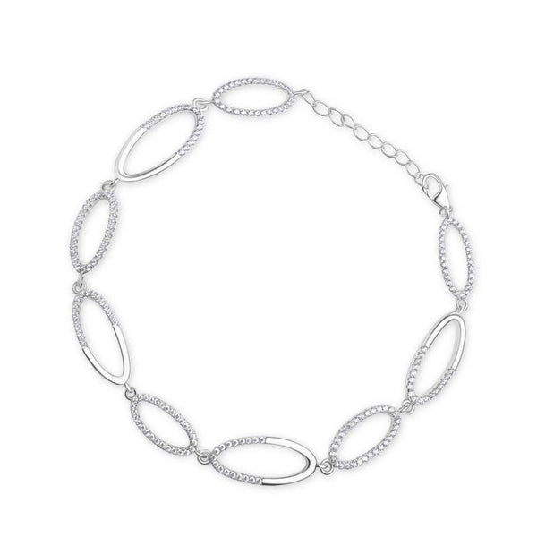 Sterling Silver Cubic Zirconia Set Open Oval Link Bracelet