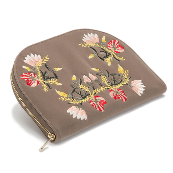 Wolf Mink Velvet Portfolio Travel Jewellery CaseStorage: 2 earring holders, 2 ring rolls, 1 medium zip pocket, 1 large zip pocket large, and 4 necklace holders.26cm l x 18cm w x 2.5cm h