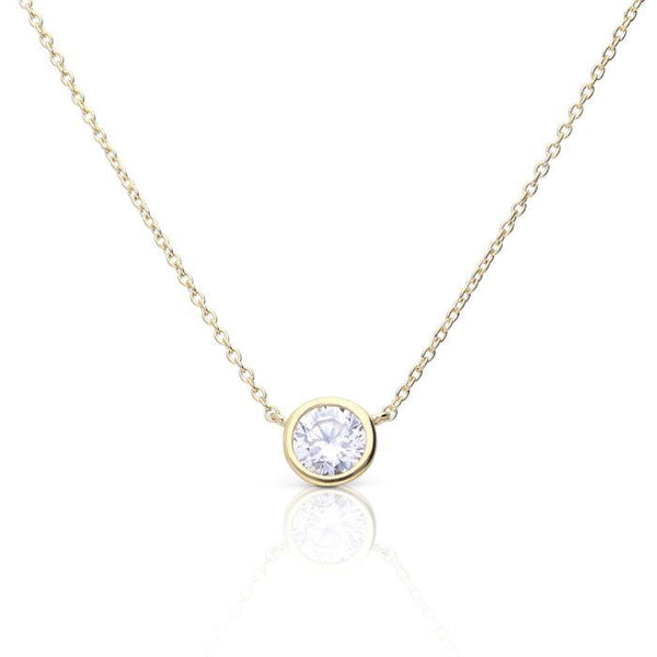 Yellow Gold Plated Round Cubic Zirconia Rubover Necklace